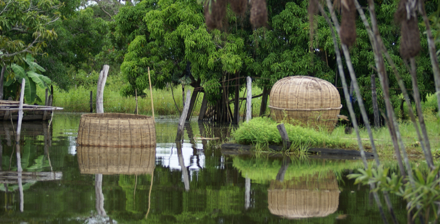 Dando continuidade ao trabalho, preenche o interior do “curral” com o barro extraído diretamente do barranco a sua volta. O ribeirinho, com a referida retirada, esculpe uma rampa até o rio para facilitar o acesso ao mesmo e a ancoragem das canoas utilizadas para pesca. Assim como o entrada ao rio para pegar água, banho e limpeza do peixe pescado e utensílios domésticos.