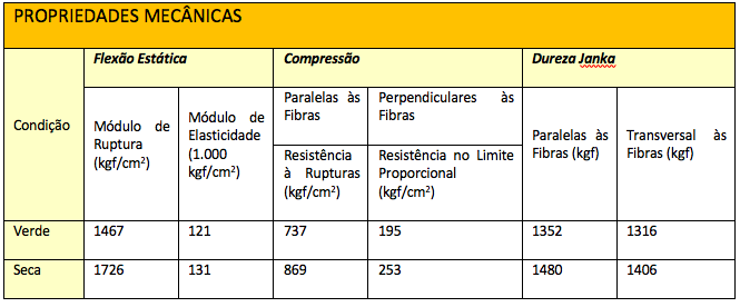 Tabela 4. Propriedades Mecânicas da Piúva. Fonte: IBAMA